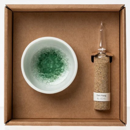 Glass Sample & Sand Memento Den HaagDeze speciale editie van Glass Sample & Sand Memento is vervaardigd met glas uit verschillende delen van Nederland. De verschillen in het glas weerspiegelen de unieke eigenschappen en chemische samenstelling van het lokale zand…
